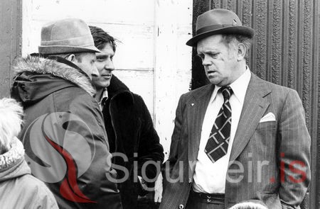Páll Eydal Jónsson á Garðstöðum, síðar Hofi, Gísli Valtýsson, prentari og Ingólfur Arnarson. Myndin er tekin 22. apríl 1979.