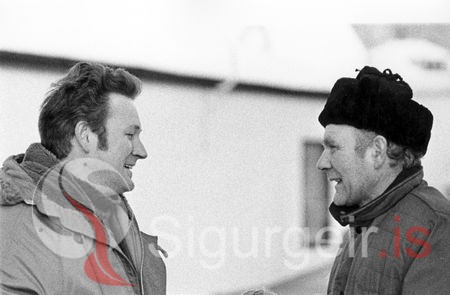 Tekin í desember 1975. Jón Kjartansson og Sigurður Gunnarsson á léttu spjalli.