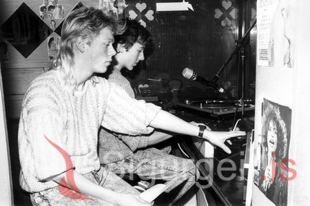 Viktor Ragnarsson, tæknimaður og Sigurður Óli Hauksson, þulur við útsendingar hjá Jólarásinni. Myndin er tekin 18. desember 1987.