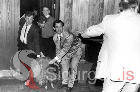 Ef einhver efast um hver á hrekkinn, þá er svarið lengst til hægri. Myndin er tekin á lundaballi 5. nóvember 1988.