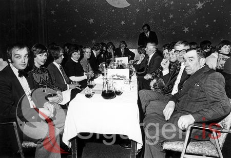 Elliðaeyingar á lundaballi 15. október 1976. Á myndinni eru m.a.: Sigurður Sigurðsson í Svanhól, Margrét Sigurðardóttir, Þórður Sigursveinsson, Guðmunda Hjörleifsdóttir, Lilja Hjörleifsdóttir, Hörður Runólfsson, Guðlaugur Guðjónsson frá Oddstöðum, Anna P. Sigurðardóttir, Inga Halldórsdóttir, Hjörleifur Guðnason frá Oddstöðum og Þórarinn Guðjónsson frá Kirkjubæ.