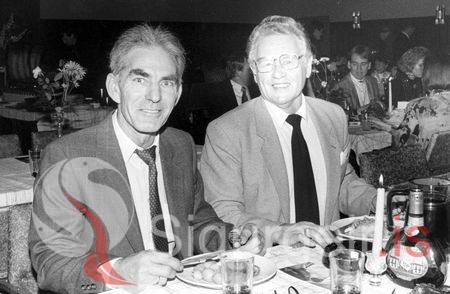 Magnús Magnússon í Dölum og Ólafur Oddgeirsson á góðri stund á Lundaballi 8. nóvember 1986.