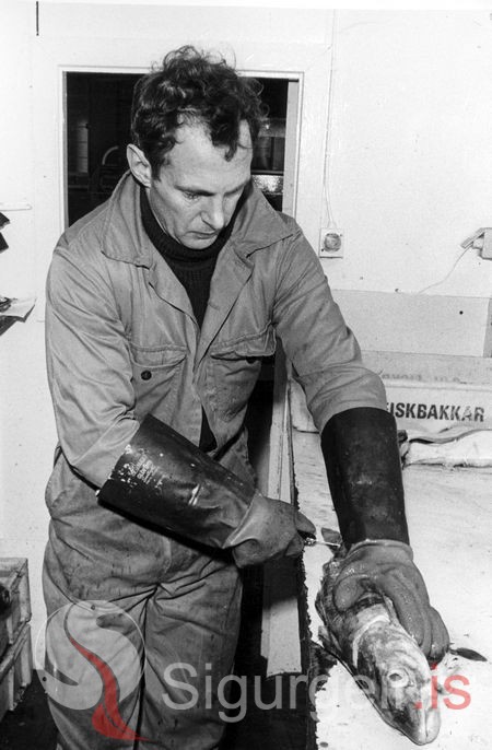 Jón Ingi Guðjónsson, fisksali í Fiskbúðinni við Bárugötu. Myndin er tekin 29. mars 1982.