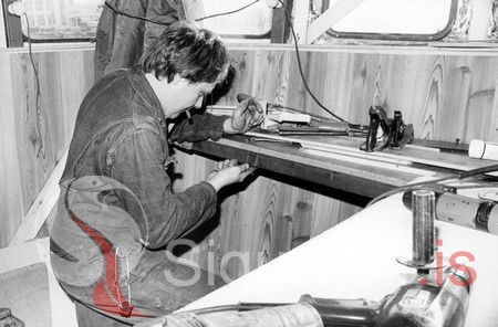 Stefán Jónsson á Grund við vinnu sína í Skipalyftunni. Myndin er tekin 27. október 1981.