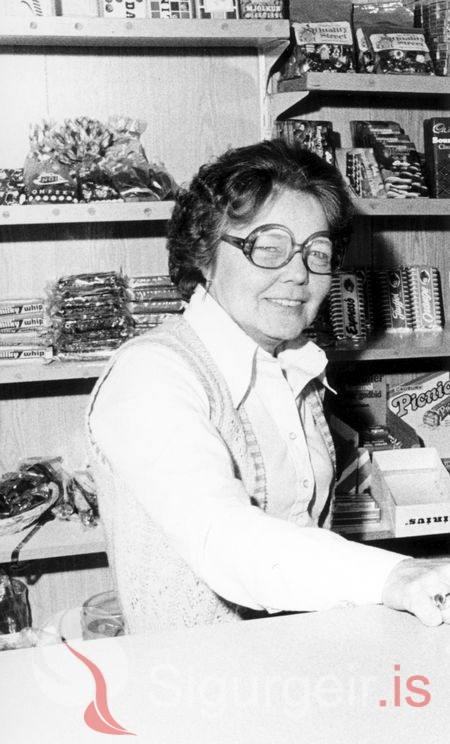 Sigríður Stefánsdóttir á Geithálsi. Myndin er tekin á Bílastöðinni 8. maí 1980.