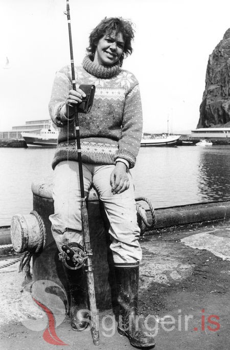 Aðalbjörg Bernódusdóttir frá Borgarhól. Myndin er tekin á sjóstangaveiðimóti í Vestmannaeyjum 26. maí 1985.