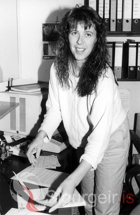 Anna Dóra Jóhannsdóttir, starfsmaður hjá Bæjarsjóði Vestmannaeyja. Myndin er tekin 31. október 1986.