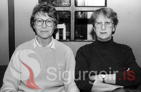 Tekin á leikskólanum Rauðagerði í nóvember 1990. Birna Guðjónsdóttir og Þórdís Friðsteinsdóttir.