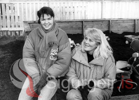 Á Gæsluvellinum við Miðstræti. Kristín Sigursteinsdóttir og Harpa Kristinsdóttir. Myndin er tekin 16. nóvember 1990.