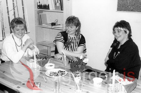 Júlía Bergmannsdóttir (1963-2006), Bryndís Guðjónsdóttir og Hrefna Guðjónsdóttir. Myndin er tekin 2. maí 1987.