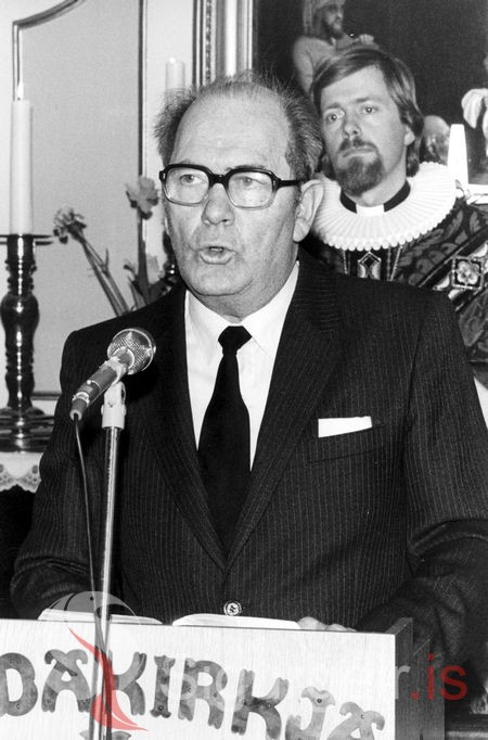 Tekin í Landakirkju 23. janúar 1983, þegar 10 ár voru liðin frá eldgosinu á Heimaey. Arnmundur Þorbjörnsson.
