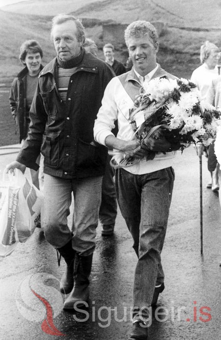 Tekin 14. ágúst 1984. Sigurður Guðmundsson á Háeyri og sonur hans Árni Sigurðsson.
