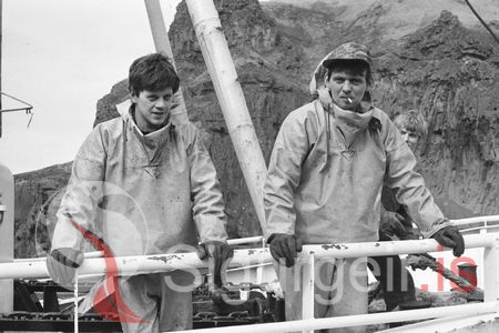 Tekin um borð í Heimaey VE-1. Sigurður Sveinsson og Magnús Guðmundsson.