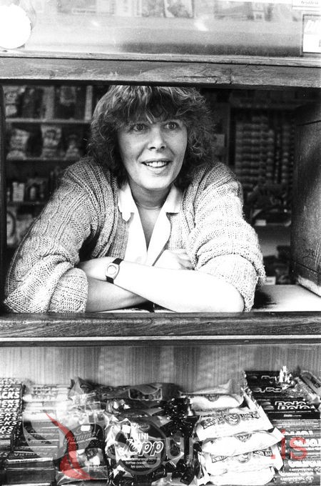 Tekin í lok mars 1982 í Blaðaturninum við Bárugötu. Í lúgunni er Sigríður Kristmundsdóttir, hún bjó í Eyjum í u.þ.b. 2 ár á Ásavegi 29.