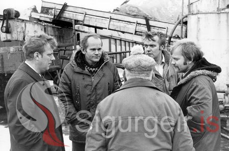 Tekin 19. janúar 1980. Haraldur Gíslason, Bogi Sigurðsson, Bjarni Árnason og Bryngeir Sigfússon. Einar Hannesson á Brekku snýr baki í myndavélina.