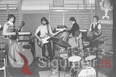 Hljómsveitin Bellatrix á sjómannadagsballi 1979. Hlöðver Guðnason, Kristinn Jónsson, Friðsteinn Vigfússon, Sigurður Ingi Ólafsson og Karl Björnsson.