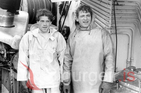 Tekin 28. september 1983. Þeir brosa þegar vel gengur, nýkomnir að landi með góðan afla. Skarphéðinn Elvar Skarphéðinsson og Árni Óli Ólafsson í Suðurgarði.
