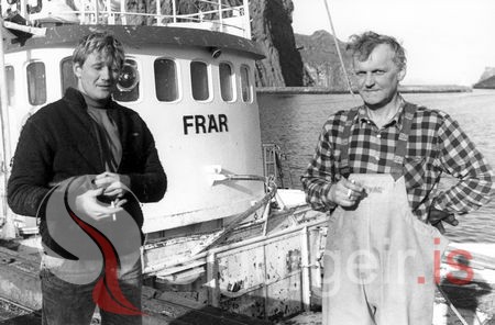 Tekin 29. apríl 1989. Stefán Einarsson og Gústaf Sigurlásson frá Reynistað, skipverjar á Frá VE-78.