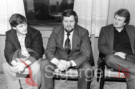 Tekin 7. mars 1981. Starfsmenn Herjólfs hf. Gústaf Guðmundsson, vélstjóri, Lárus Gunnólfsson, stýrimaður og Friðsteinn Vigfússon, vélstjóri.