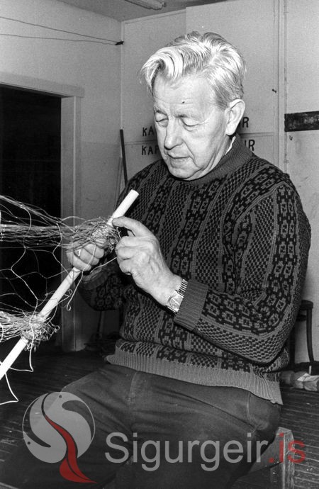 Tekin 8. mars 1978. Óskar Vigfússon á Hálsi að fella þorsknet.