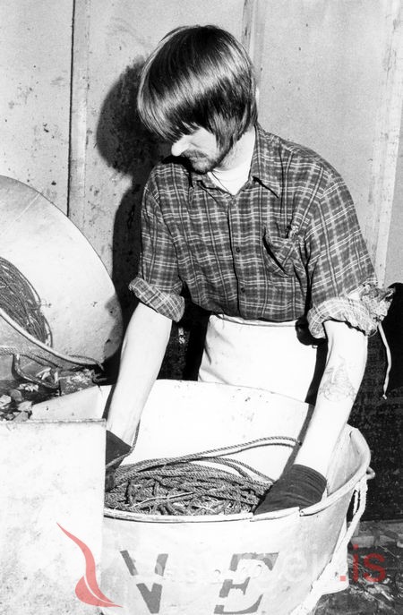 Tekin 18. janúar 1979. Pétur Árnmarsson í beitningunni.