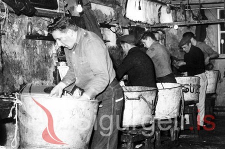 Tekin árið 1963. Austfirðingar að beita á Snæfugli SU-20, á línuvertíðinni 1963.