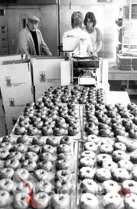 Tekin 17. október 1983 í Vilberg-kökuhúsi, Vestmannabraut 36. Lengst til vinstri er Haraldur Þorkelsson í Björk og lengst til hægri er Sigríður Dagbjartsdóttir.
