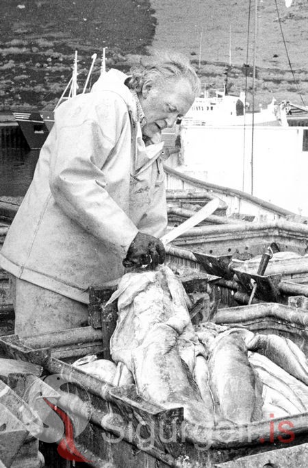 Tekin 17. júní 1977. Hilmar Rósmundsson með eina virkilega væna löngu (lútfisk), sem án efa kemst á mörg jólaborðin í Svíþjóð.