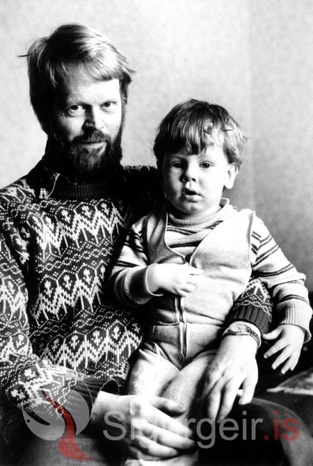 Tekin 7. apríl 1976. Óskar Sigurðsson, vitavörður á Stórhöfða með son sinn Pálma Frey Óskarsson.