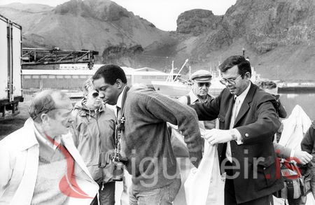 Tekin 25. júní 1987. Páll Helgason ásamt erlendum ferðamönnum.