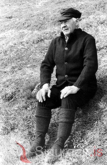 Myndin er tekin í maí 1979 við gerð kvikmyndar Páls Steingrímssonar og Ernst Kettlers "Vestmannaeyjar 1873" á myndinni er Jónas Sigurðsson í Skuld.
