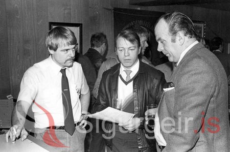 Tekin 10. mars 1984 á sýningu Friðriks A. Jónssonar á siglingatækjum. Ögmundur Friðriksson, Kristján Ólafsson og Sveinn Valdimarsson.