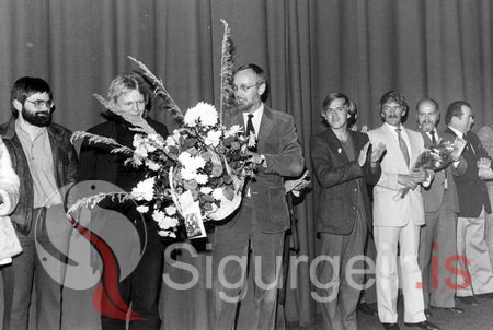 Myndin er tekin 29. september 1983 þegar kvikmynd Þráins Bertelssonar Nýtt líf var frumsýnd í Vestmannaeyjum.
