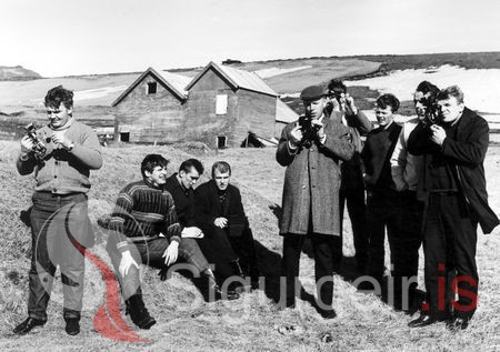 Tekin 4. apríl 1968 á Breiðabakka. Strákarnir í Stýrimannaskólanum í Vestmannaeyjum taka sólarhæð.