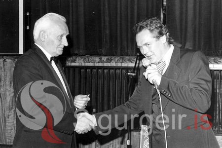 Tekin 9. desember 1978 í 40 ára afmæli Golfklúbbs Vestmannaeyja. Guðlaugur Gíslason, einn af stofnendum klúbbsins og Ragnar Guðmundsson, formaður.