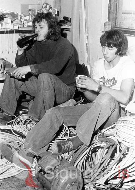 Tekin á raftækjavinnustofunni Geisla, Strandvegi (Keleríi) 5. október 1976. Kristján Friðþjófsson og Pétur Jóhannsson.
