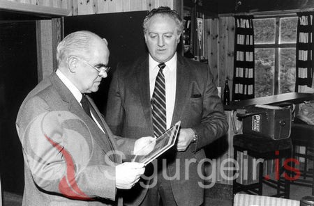 Tekin 11. október 1983. Magnús H. Magnússon, fyrrverandi bæjarstjóri í Vestmannaeyjum og Stefán Runólfsson.