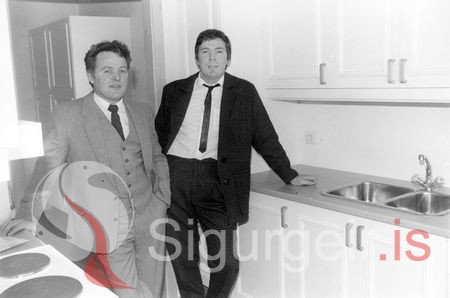 Tekin 16. mars 1985. Steingrímur Snorrason og Ársæll Sveinsson hjá Steina og Olla hf. við vígslu nýja Litlalands.