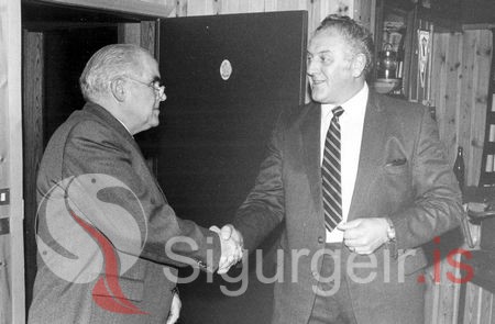 Tekin 11. október 1982. Magnús H. Magnússon, fyrrverandi bæjarstjóri í Vestmannaeyjum og Stefán Runólfsson.