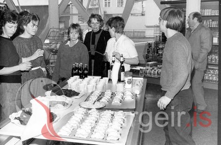 Tekin þegar matvöruverslun var opnuð í kúluhúsinu 1. apríl 1985.