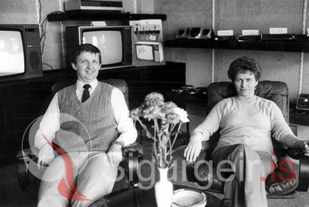 Tekin í versluninni Kjarna 13. maí 1983. Sigursteinn Óskarsson frá Hálsi og Sigríður Óskarsdóttir.
