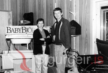 Tekin í versluninni Kjarna 20. september 1983. Sigríður Óskarsdóttir og Sigursteinn Óskarsson frá Hálsi.