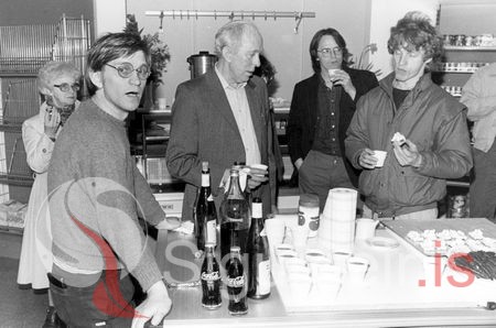 Tekin þegar matvöruverslun var opnuð í kúlúhúsinu 1. apríl 1985. Halldóra Björnsdóttir, Kristján Bogason, Bogi Jóhannsson, Gunnar Kári og Gunnar Bogason.