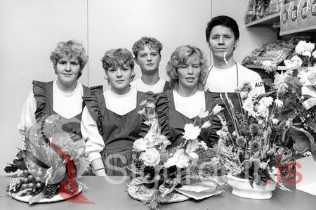 Tekin á bensínsölunni Kletti 13. desember 1982. Ásta María Ástvaldsdóttir, Lilja Birgisdóttir, Anna Hulda Long, Katrín Sjöfn Sigurbjörnsdóttir og Magnús Sveinsson.