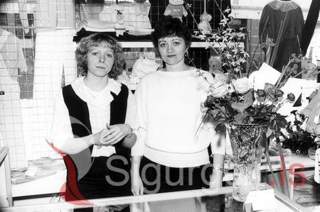 Tekin í versluninni Adam og Evu 22. mars 1983. Rósa Guðjónsdóttir og Guðmunda Hjörleifsdóttir.