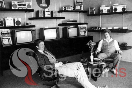 Tekin í versluninni Kjarna 13. maí 1983. Sigursteinn Óskarsson frá Hálsi og Ólafur Gränz.