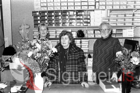 Tekin í Skóbúðinni. Sigrún Óskarsdóttir, Sigurbjörg Axelsdóttir (Dadda) og Axel Ó. Lárusson.