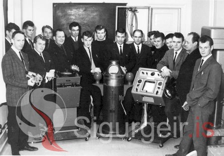 Nemendur og kennarar. Á myndinni má þekkja Guðjón Ármann Eyjólfsson, skólastjóra, kolbein Ólafsson og Magnús H. Magnússon.