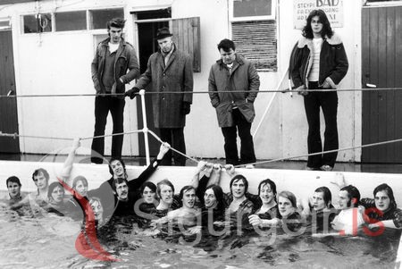 Í lauginni talið frá vinstri: Ingi R. Ellertsson, Hlíðar Kjartansson, Þorvaldur Pálmi Guðmundsson, Leó Óskarsson, Ómar Kristmannsson, Sveinn Rúnar Valgeirsson, fyrir framan hann er Valur Rósu, Óli B. Ólason, Erling Þór Pálsson, Símon Sverrisson, Sævar Sveinsson, Kristján Elís Bjarnason, Helgi Ágústsson, Sigurjón Ragnar Grétarsson, Hilmar Sigurbjörnsson, Jón Ingi Guðjónsson og Gylfi Ingólfsson.