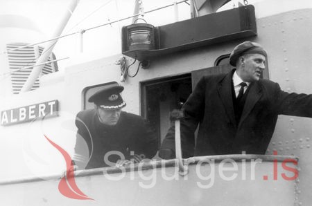 Tekin 27. febrúar 1963. Lárus Þorsteinsson, skipherra á Alberti og Jón Ísak Sigurðsson, lóðs.